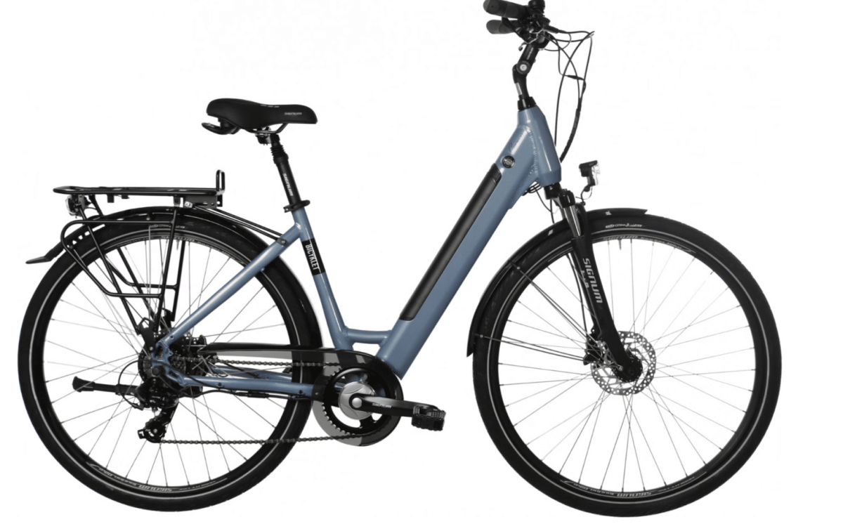 Le Bicyklet Carmen est équipé de nombreux accessoires pratiques, tels qu’un porte-bagages arrière, des garde-boues, une béquille latérale et un éclairage intégré. De plus, son écran KM Just-Two LCD offre une vue claire sur les niveaux d’assistance et l’autonomie de la batterie.