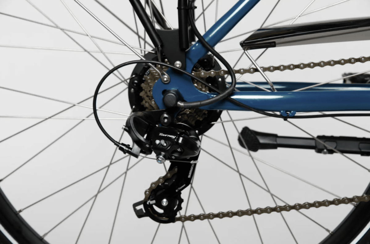 Une transmission mono plateau Shimano Tourney à 7 vitesses