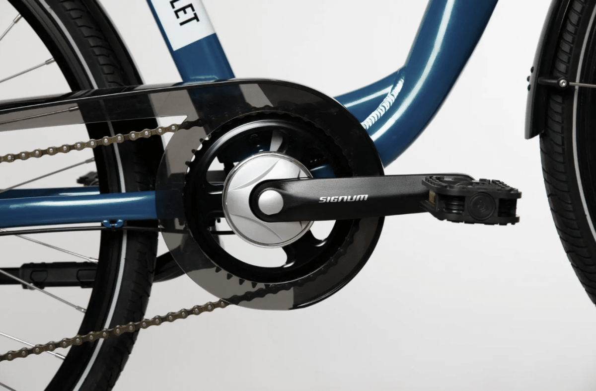 Le Bicyklet Claude possède un moteur moyeu Bafang de 250 watts / 36 volts et de 35 Nm, placé dans l’axe de la roue arrière. Ce moteur, avec une assistance permettant d’atteindre les 25 km/h, est idéal pour une utilisation urbaine.