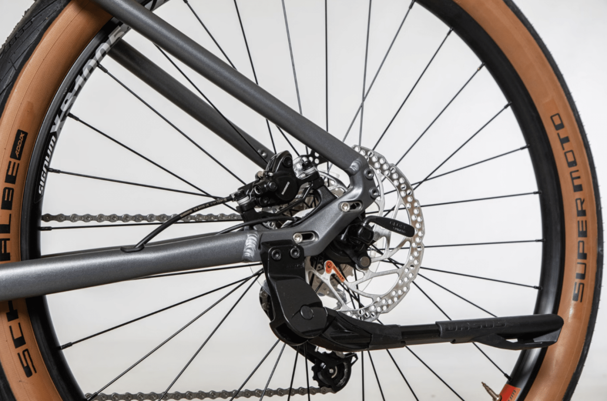 Ensuite, les roues en alliage Signum, équipées de pneus Schwalbe Super Moto 27.5 x 2.40 pouces, ont une excellente adhérence et stabilité sur toutes les surfaces.