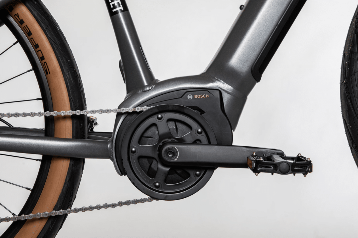 Le Bicyklet Gabriel a un moteur Bosch Performance Line de 250 watts avec un couple de 63 Nm, permettant une assistance jusqu’à 25 km/h. Doté d’un capteur de couple, ce moteur est très réactif et silencieux.