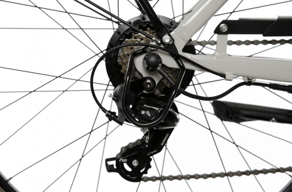 La transmission Shimano Tourney à 6 vitesses du Bicyklet Louison