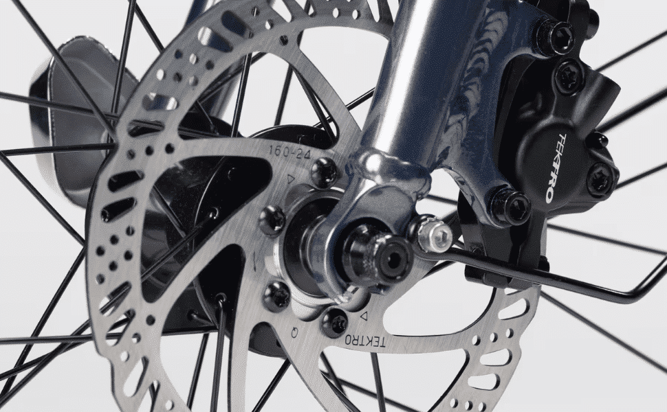 Les freins à disques hydrauliques Tektro T275, avec des disques de 160 mm, garantissent un freinage puissant et efficace.