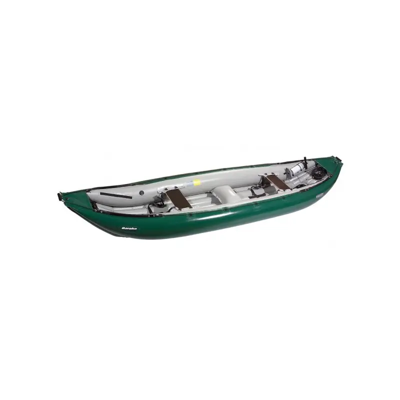 Canoë gonflable BARAKA GUMOTEX biplace auto videur pour deux pagayeurs, gros porteur, adapté aux raids sur de longues distances avec chargement, le Baraka excelle en eaux vives grâce à son volume, son « rocker » (spatulage) prononcé, et son système d’autovidange qui évacue le bateau plein en moins d’une minute.