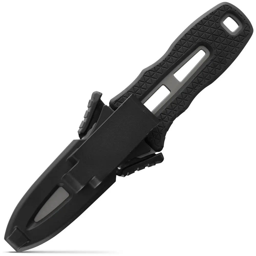 Le point de fixation de la longe à l’extrémité de la poignée offre aux plaisanciers la possibilité de se protéger davantage contre la perte du couteau dans les eaux agitées lorsqu’il est attaché à la languette d’arrimage.Comprend une clé à valve pour réservoir d’oxygène au centre de la poignée.