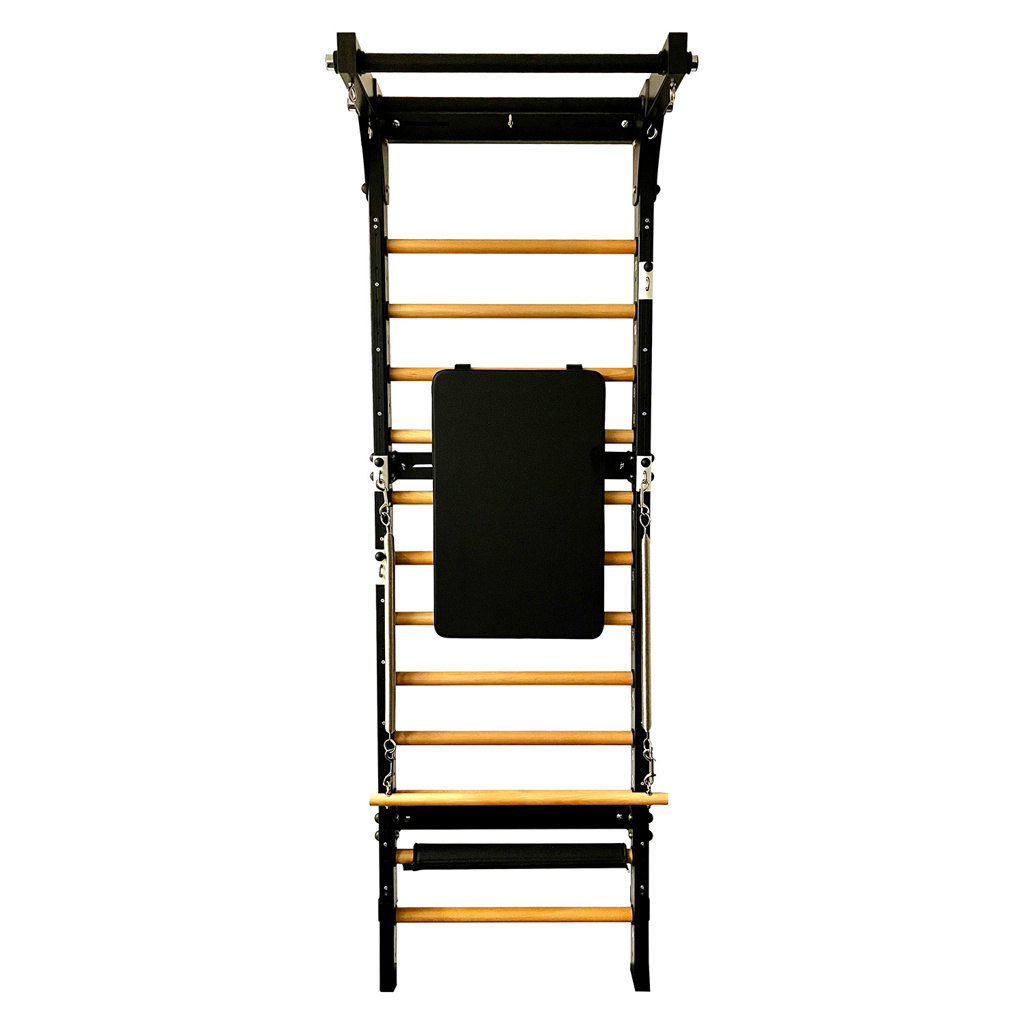 De plus, c’est un gain de place incroyable, n’occupant que quelques centimètres d’espace au sol et permettant d’utiliser la même pièce pour des cours sur tapis, sur chaise ou sur accessoires. Les deux barres de suspension supérieures sont parfaites pour les tractions avec plusieurs options de prise, et l’échelle peut être utilisée avec ou sans ses ressorts à réglage rapide et son panneau rembourré. Et sa dernière itération propose une échelle à deux hauteurs. Retirez simplement la section inférieure si la hauteur de votre plafond vous empêche d’ajouter la totalité de cet espalier à votre maison ou votre studio.