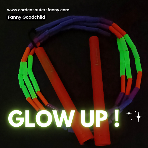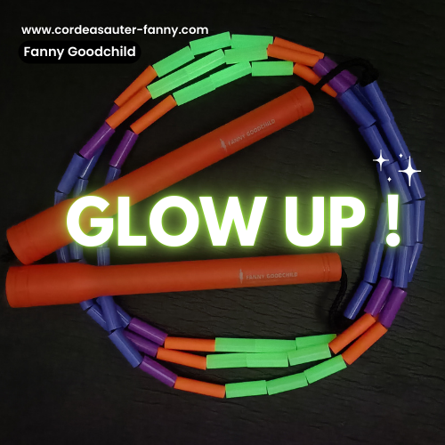 Glow up ! est un modèle de corde à sauter unique avec ces perles rigides qui brillent la nuit et sa corde noire, blanche ou violette à choisir. Il n’y aura pas beaucoup de confection de ce modèle afin de le rendre encore plus précieux.Toi aussi, tu peux briller la nuit avec cette corde à sauter sortie d’un conte de fée 🧚♀️✨ !