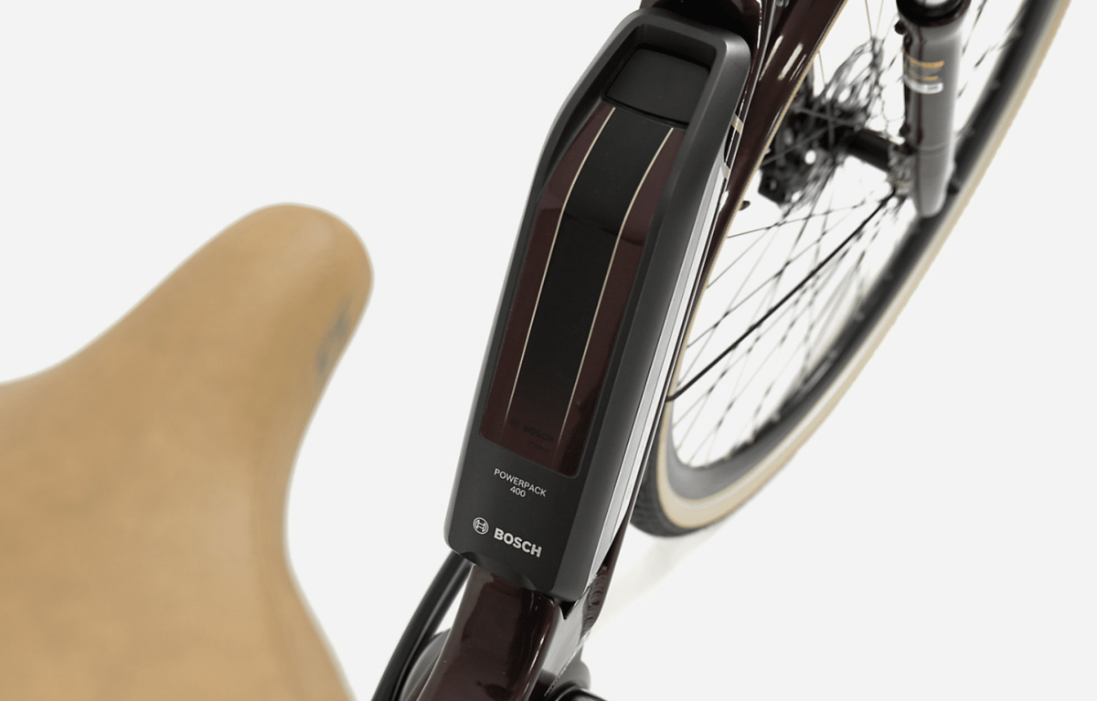Le Granville E-Urban 30 possède une batterie Bosch Powerpack 400 Wh, discrètement intégrée sur le cadre pour un meilleur équilibre. Cette batterie procure une autonomie impressionnante allant jusqu’à 90 km selon les conditions d’utilisation et le niveau d’assistance choisi.
