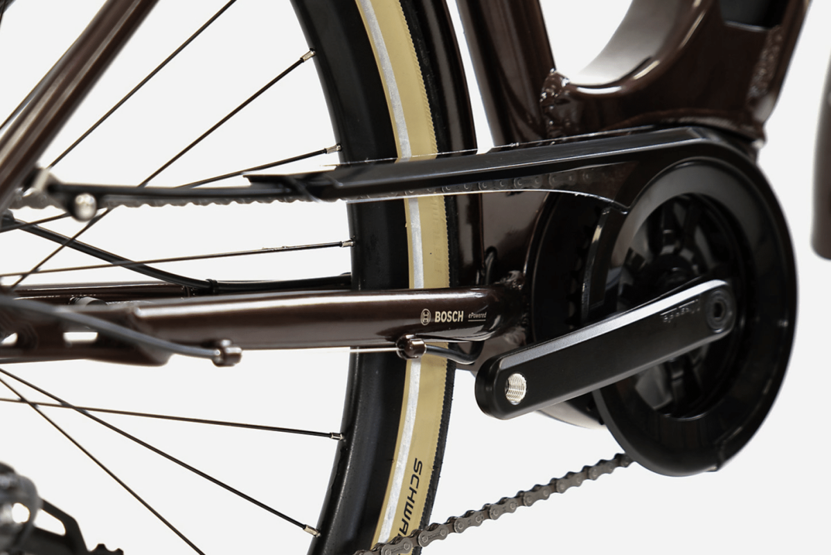 Ce vélo de ville a un moteur central Bosch Active Line 250 watts qui délivre un couple de 40 Nm, garantissant une assistance fluide et puissante. Ce moteur se distingue par sa compacité et sa légèreté, ce qui permet de conserver une excellente maniabilité du vélo.