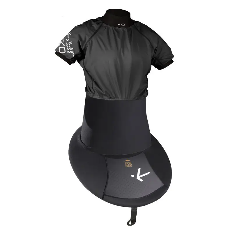 Le système est démontable afin que les pagayeurs puissent n’avoir qu’un seul gilet qui s’adapte sur leurs jupes-anoraks quels que soient leurs modèles C1, K1, manches longues, manches courtes