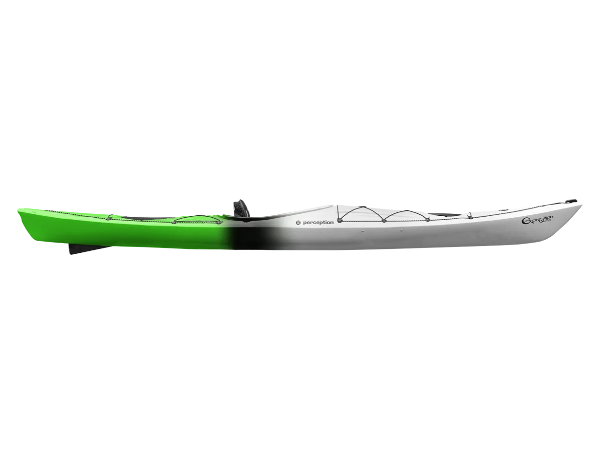 Dernier-né des kayaks de mer PERCEPTION, l’EXPRESSION bénéficie d’un niveau d’équipement exceptionnel pour sa catégorie : dérive rétractable, siège ergonomique avec sur-siège mousse, cale-cuisses (doublés mousse) et cale-pieds réglables, couvercle de trappe bi-matière…