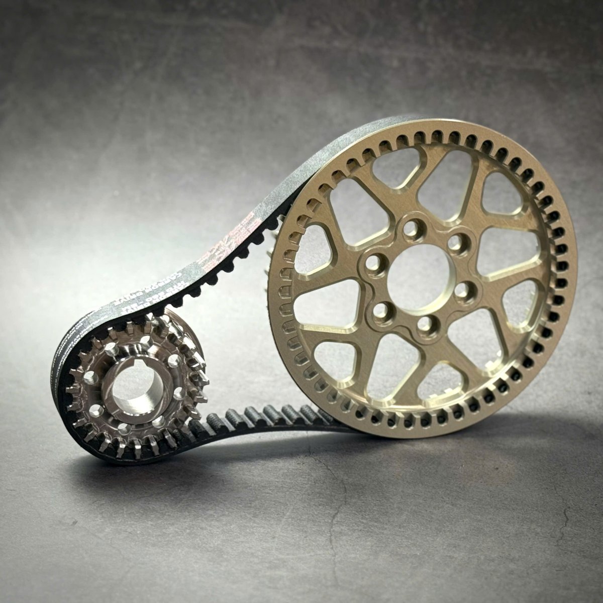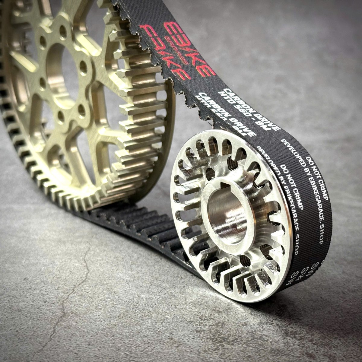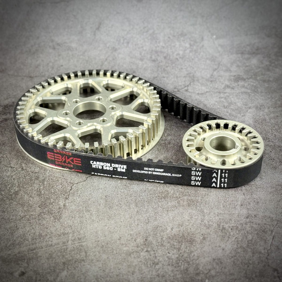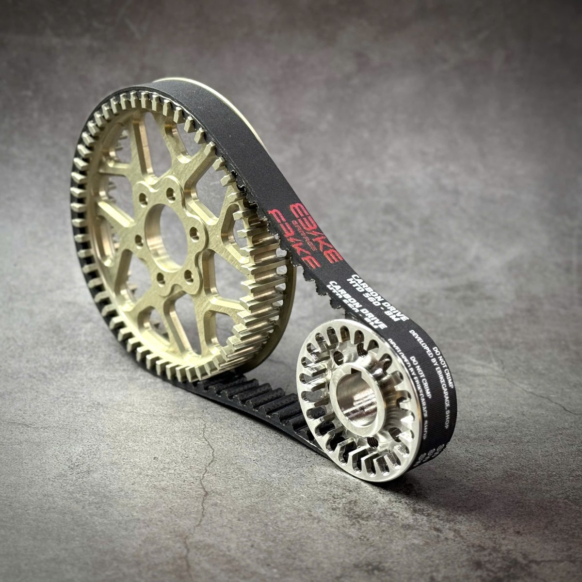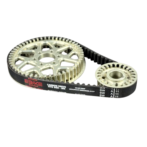 Découvrez l’évolution tant attendue pour nos motos électrique légères ! Un kit transmission primaire courroie ultra renforcé avec courroie en fibre de Carbone, poulie en acier 304 et poulie arrière en Alulinium 7075 T7 anodisé dur !