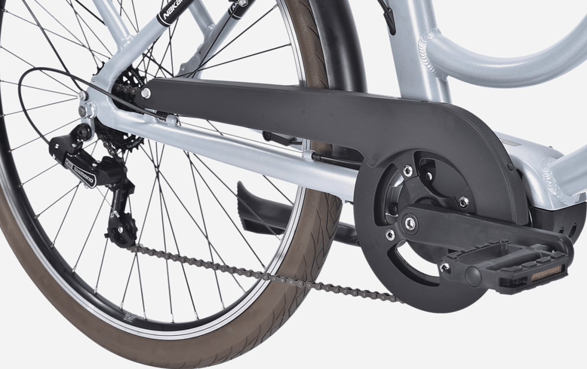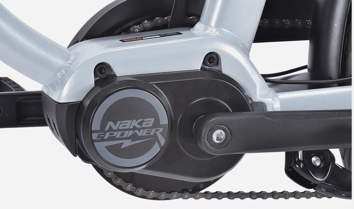 Le moteur Naka E-Power, situé au centre du vélo, dispose d’un couple de 80 Nm pour une conduite sans effort. Grâce à son capteur de puissance, l’assistance s’ajuste automatiquement à l’effort exercé sur les pédales.