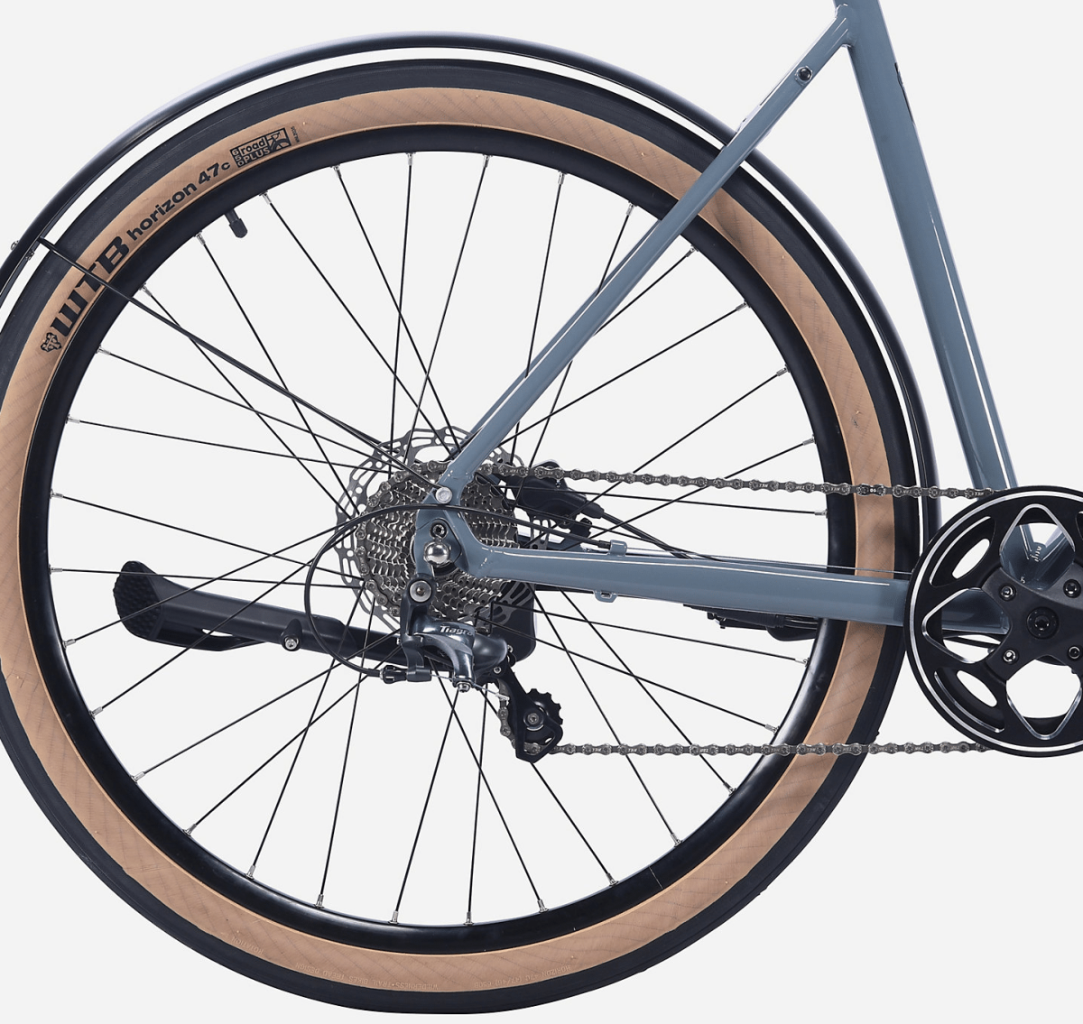 Les roues de 27,5 pouces équipées de pneus WTB Horizon 650×47 mm offrent une excellente adhérence et stabilité, que ce soit sur des routes pavées ou des chemins plus accidentés.