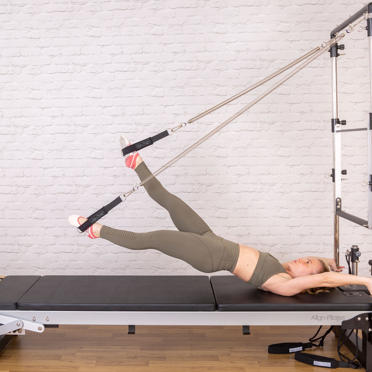Les sangles rembourrées à double boucle pour Reformer Pilates peuvent être utilisées comme sangles pour les pieds lors d’exercices pour les jambes ou pliées en deux pour servir de poignées. Doublées, elles raccourcissent rapidement la longueur des cordes auxquelles elles sont reliées. Ajoutez de la variété à votre entraînement grâce à ces sangles combinées : elles conviennent pour une utilisation sur le reformer, le demi-cadillac et le cadillac complet. Vous pouvez également envisager sangle combinée mains-pieds silencieuse.Elles sont utilisées comme accessoires pour les Reformer, les Half Cadaillac et les Cadillac.
