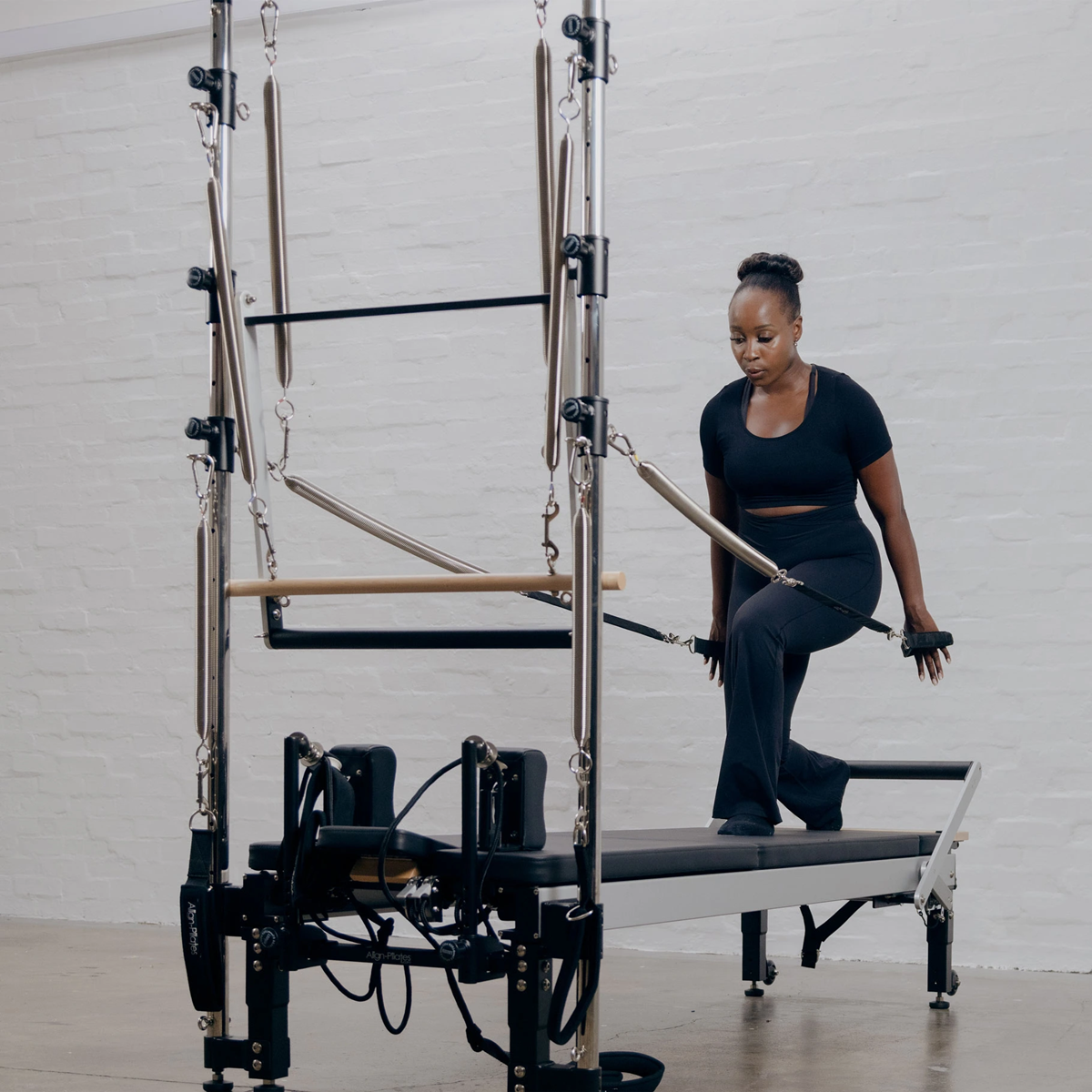 Aussi, les mousquetons à chaque extrémité vous permettent l’ajout ou le retrait facile des ressorts, l’ajout des poignées ou leur bouclage. Peuvent être utilisées avec le Half Cadillac, le Full Cadillac, le Wall Unit et les Spring Walls.