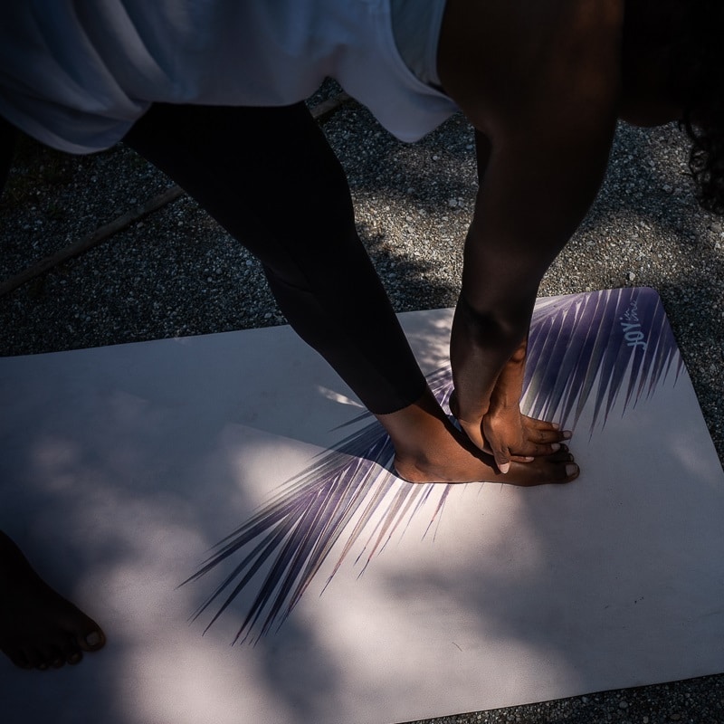 Conseil: pour activer immédiatement l’adhérence au tapis, nous vous conseillons de légèrement humidifier vos mains et vos pieds avec de l’eau ou encore de vaporiser légèrement le tapis avec.