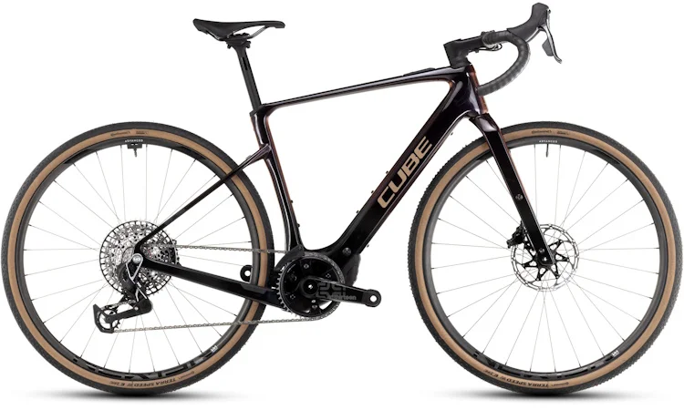 | Cube Nuroad Hybrid C:62 Race | Bosch SX – 55 Nm | 400 Wh | Shimano GRX 12‑vitesses | rigide / carbone | ~14,3 kg | ≈3599 £ |