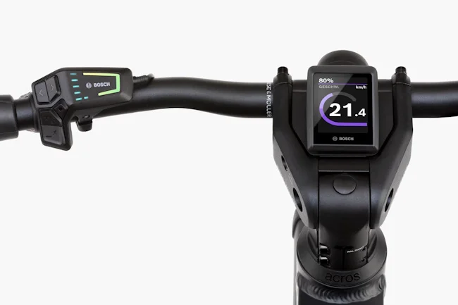 | Dérailleur | Bosch eShift / Rohloff E‑14 Speedhub en option – changement fluide et entretien réduit| Manettes | Bosch LED Remote – sélection modes au guidon |